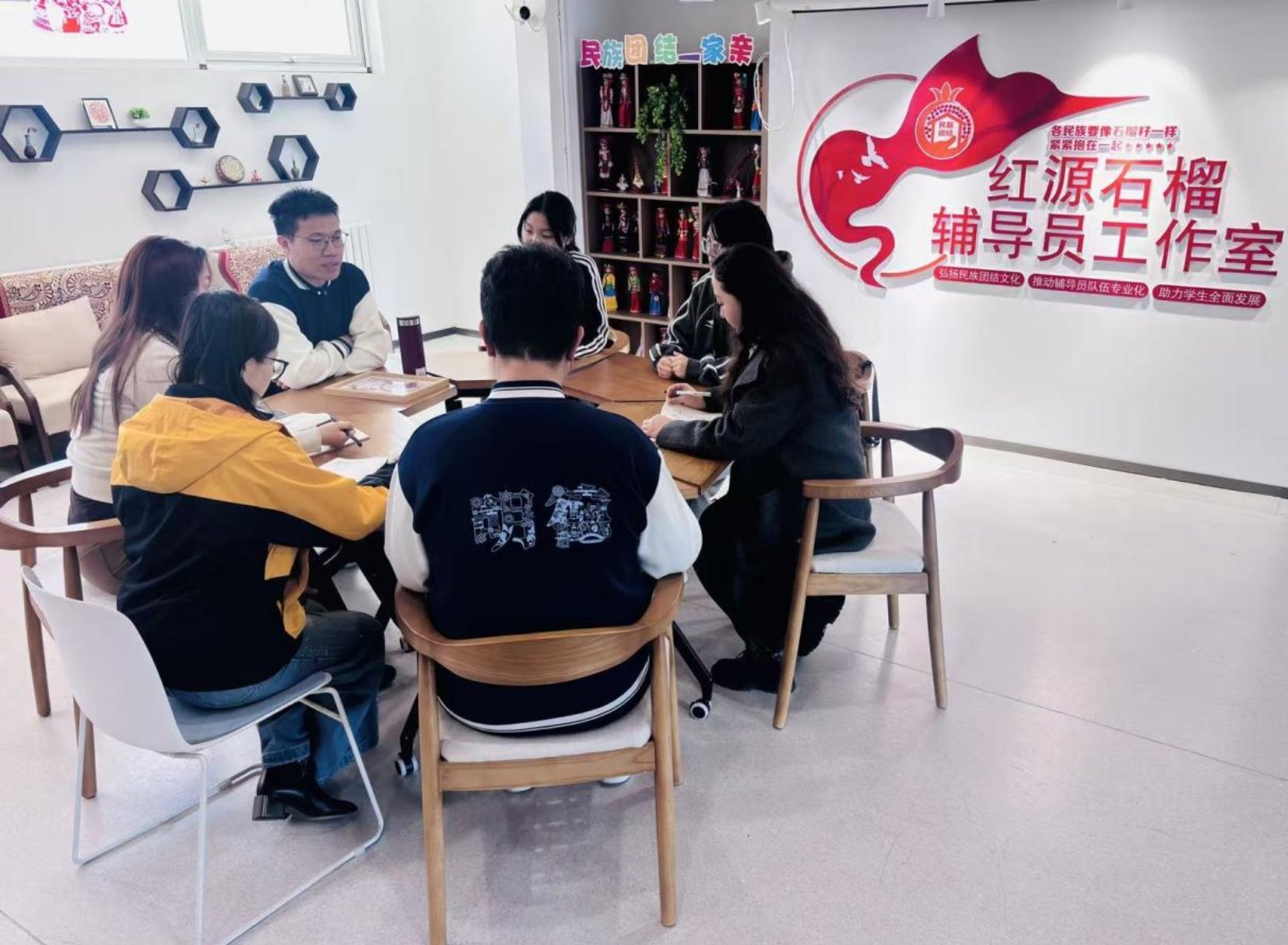 近日,“红源石榴”辅导员工作室在明德书院社区召开新学期工作部署会议,会议由张锋主持,工作室辅导员与学生助管参会。