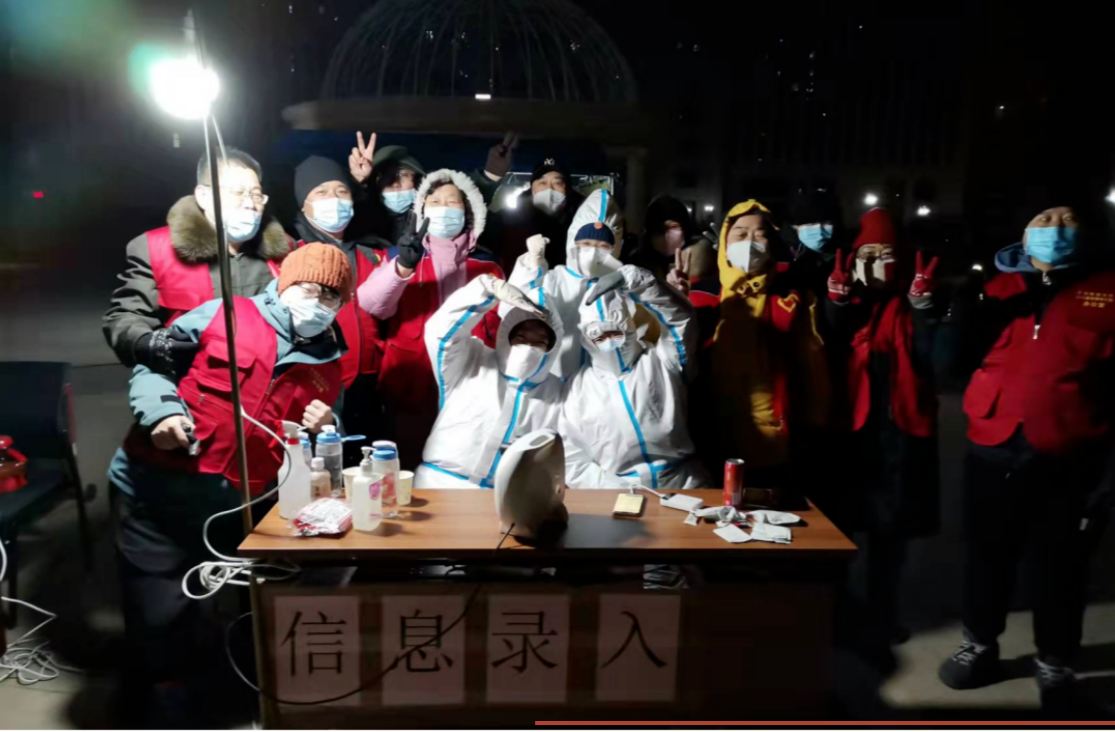 夜已深,青年志愿者李克涵戴上N95口罩、穿上了红马甲,听从干部指挥开展“敲门行动”。她主动请求到人手较少的老旧小区应援,即便已脚步沉重、浑身闷热、呼吸急促,她仍耐心地逐户敲门、逐人登记,进行地毯式、拉网式排查,按照“边摸底、边动员,不留死角、不落一人”的原则,细心询问,传递消息,确保不落一户不差一人。