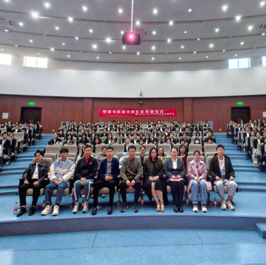 为引领团员坚定理想信念,深化理论学习、加强实践锻炼,落实立德树人的根本任务,2024年10月19日下午,共青团伟德国际1946源自英国明德书院委员会在综教演艺厅召开了2024级新生团支部授旗仪式暨2024-2025学年团校开班仪式。明德书院副院长张锋、团委书记秦月、设计与艺术学院团委书记戴晓亚、管理学院辅导员卢斌、教育学院团委副书记丁戈、法学院兼职辅导员刘怡宁、外国语学院兼职辅导员冯靖涵、明德书院团委副书记刘敏、黄露、麦日克那·艾力、辅导员黄坚学、刘亚甜及明德书院共青团员代表参加了此次大会。
