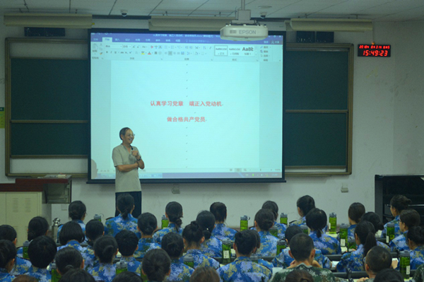 他带领同学们梳理了2017年10月24日,党的十九大通过的党章的主要内容;向大家介绍了入党流程;结合大学生中存在的各类入党动机,着重强调了端正入党动机的积极性;他还详细介绍了入党申请书和思想汇报的写法。