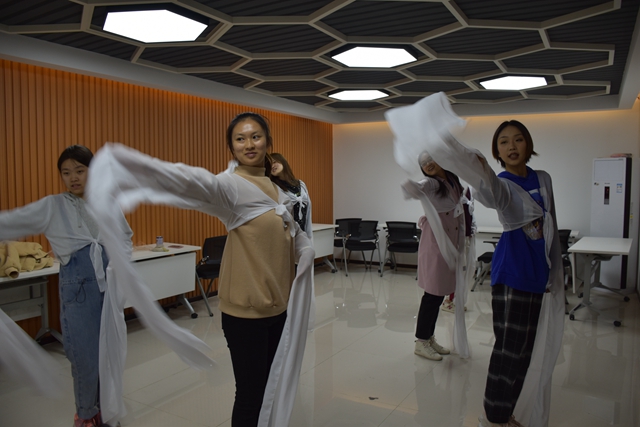 “每周五我们在舞蹈教室相聚,在古典音乐的熏陶下,我们开始学习古典舞,水袖的每次挥动,都是我们对于这门课的热爱。”明希班王姝婷在“乐·明问学堂”之“古典舞体验课”结课后说道。