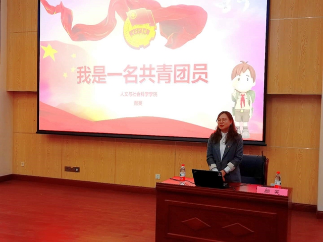 授旗仪式结束后,人文与社会科学学院团委书记颜笑以“我是一名共青团员”为题,为团员们上了“团校第一课”。课上,颜笑老师以中华民族伟大复兴的时代背景,通过新冠疫情、十四五规划等重要事件,为团员承担历史使命和时代责任指明了道路、规划了方向。通过“我为什么入团、什么是共青团、怎样做一名合格的共青团员、团歌如何唱”四个问题,引发团员思考,为全体学员上了一堂丰富而又深刻的思政课。