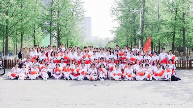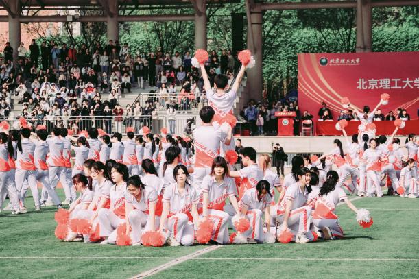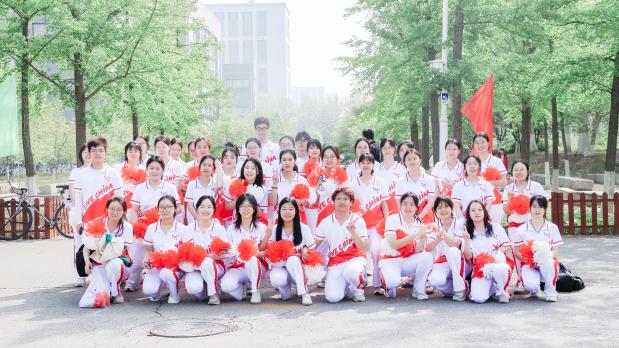 集体跳绳,十人纵身跃起的瞬间,绳影与心跳共振,绊倒时伸来的手比计数更暖人心。滚雪球,十道身影首尾相衔,像烽火在跑道燃烧蔓延,最后一棒急促的喘息里藏着团队的誓言。六人七足,绑带勒紧的不只是脚步,更是六人一体的契合无间,跌撞前行的身影写就共生共荣的热血诗篇。看台助威,嘶吼着"明德必胜"的声浪席卷看台,连春风都成了啦啦队的和声。方阵表演中,旗手扬旗似烽火传讯,展板翻转拼出"明德惟馨,全场惊呼与快门声交织,正是对"六艺"今释最炽热的礼赞。