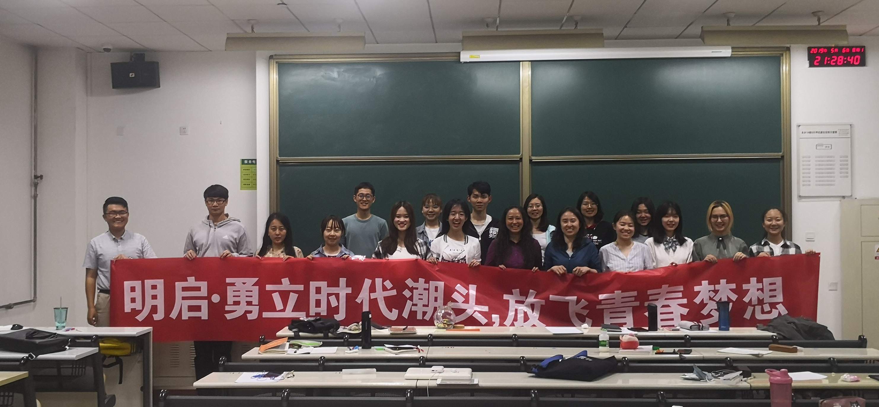 为树立远大理想、明确成长方向、找准成长路径,2019年5月6日19:00,明镜班召开以“勇立时代潮头,放飞青春梦想”为主题的德育开题。在场的嘉宾有德育导师许欣、班主任霍丽娟、团委书记王一飞和辅导员王海夷。明镜班全体同学参与其中。