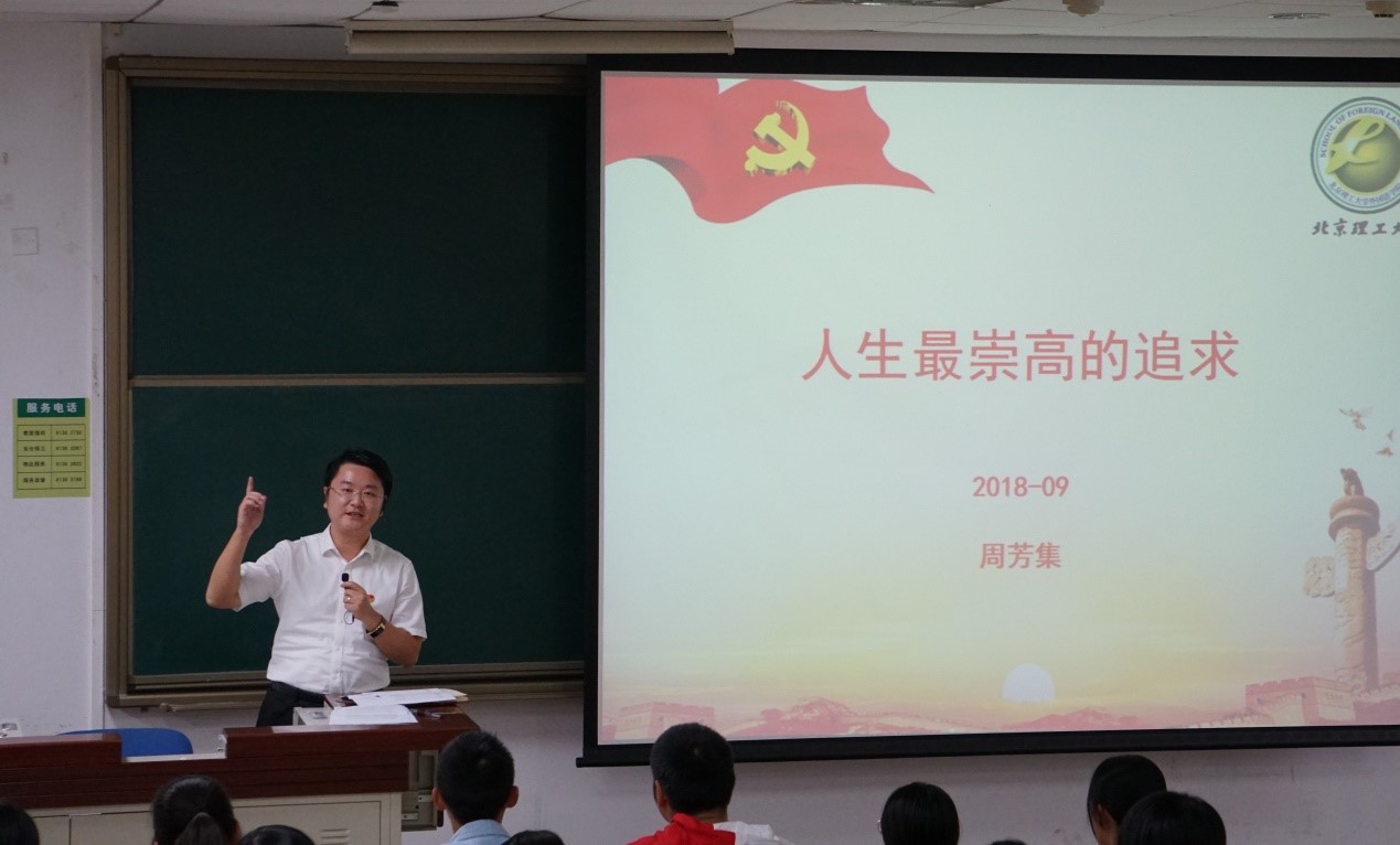 随后,周芳集重点讲述了“最崇高的追求”与“人生境界”、“伟大理论武装”和与“实践”的关系。他以周恩来总理与杨洁篪委员的生平为例,详细阐述了六个“无”与六个“有”的深刻涵义,让同学们更加清楚地了解共产党员崇高的人生境界。最后,周芳集表达了对同学们的殷切希望。他鼓励同学们胸怀壮志、担复兴大任,践行“爱国、励志、求真、力行”,做新时代青年。