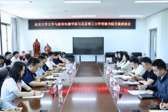 与此同时,基于“九校联盟”高校共同肩负着赓续延安精神、传承红色基因的民族重任,书院党委、明德书院教师与学生党员代表前往延安大学文学与新闻传播学院(以下简称“文学院”)进行主题教育调研,与文学院党委副书记张冰雁就人才培养和党建思政展开交流,深入学习了文学院在人才培养上的“四个一”工程,即其要求学生具有“一口流利的普通话、一手好字、一笔好文章和一颗忠诚事业的心”。同时,讨论并学习了延安大学文学院以“《我们》”院报为宣传党政思想载体的党建思政模式,其实现了院报新兴电子化与传统纸质版的同步推广,扩大了党建思政宣传的影响力。双方还就入党积极分子的培养方式展开讨论,相互借鉴,深入研讨并制定下一步的交流与合作计划,旨在进一步加强校际之间的紧密互动,共同构建一个互利共赢的合作伙伴关系,从而实现双方在教育资源、学术研究和人才培养等多方面的共同成长与繁荣。