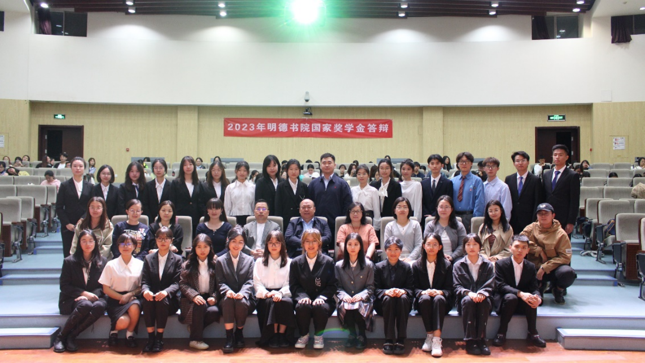 2023年10月9日晚18:30,2023年明德书院国家奖学金答辩会在综合教学楼演艺厅顺利举行。答辩会由明德书院学生李姝霏主持,参与本次会议的嘉宾有:明德书院院长曾粤兴、责任教授马秋君、教学副院长贾利军、副院长王一飞、综合室主任秦月;法学院学生工作办公室主任党莹;外国语学生工作办公室主任办主任李田田;人文与社会科学学院专职辅导员王姝婷;明德书院专兼职辅导员刘敏、田皓源、付庆玲。130余名明德学子到场学习观摩。