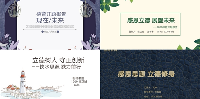 大学是充满机遇和挑战的四年,也是学生正确认识自己,追求人生价值的关键时期。本次德育开题答辩加强了学生对未来的规划意识。学生在了解自己的基础上,将各项目标落实,内化于心,外化于行;珍惜时光,奋勇前进。争取在四年后达到新的高度,成就更完美的自我。期待四年后德正班学生的新风貌。