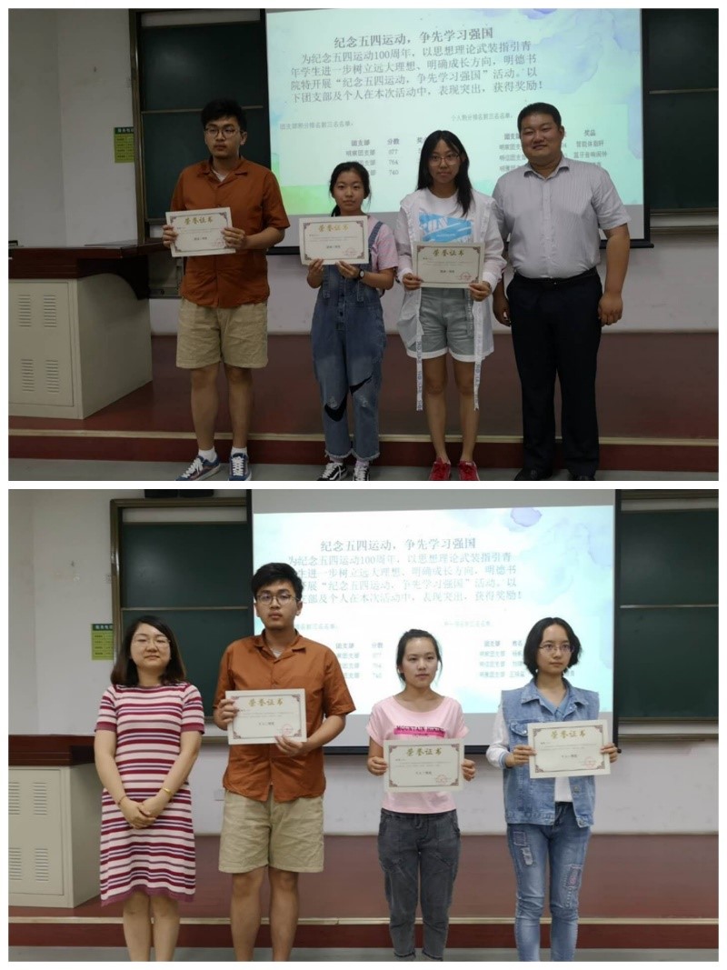 2019年5月23日12时45分,明德书院5月年级大会暨“纪念五四运动,争先学习强国“活动颁奖仪式在理科教学楼1-103举行。明德书院主管学生副院长、团委书记、辅导员及全体学生出席了本次仪式。