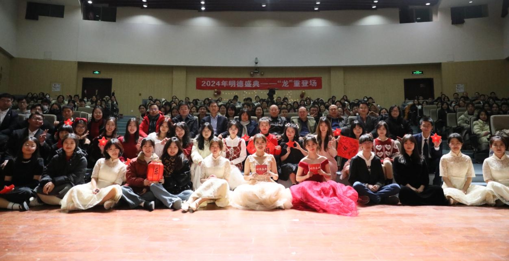 2023年12月26日晚19:00,明德书院在综合教学楼B演艺厅成功举办“2024年明德盛典”,学生工作部、校团委、书院党委、人文与社会科学学院、法学院、外国语学院、明德书院的领导、老师与书院学生一同参加盛典。