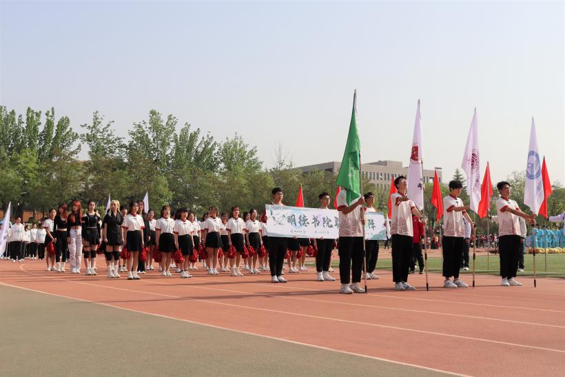 “矢志强国,坚韧无我,深精六艺,卓越明德”。开幕式上,由明德书院、人文与社会科学学院、法学院和外国语学院组成的联合方阵高喊着嘹亮的口号,步伐矫健,英姿飒爽。在主席台前,随音律而轻盈跃动的方阵舞蹈彰显出新时代明德书生的活力与风采。