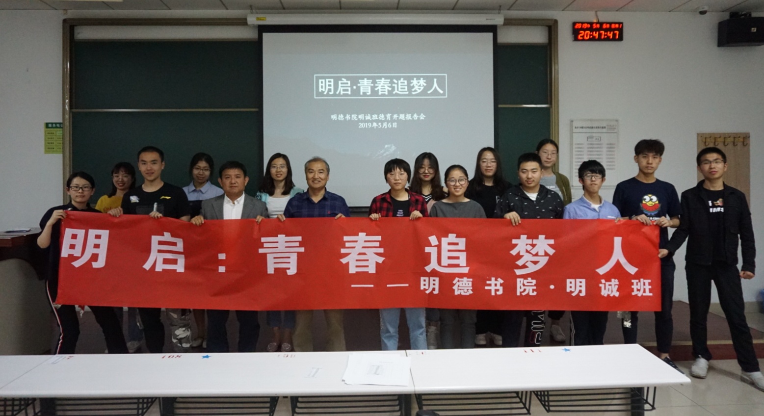德育开题是德育答辩、一年级工程和大学生思政工作的重要组成部分,更是同学们做好大学规划的关键环节。2019年5月6日18:00,明诚班召开以“青春追梦人”为主题的德育开题。在场的嘉宾有德育导师李燕月、班主任刘毅和辅导员王海夷。明诚班全体同学参与其中。