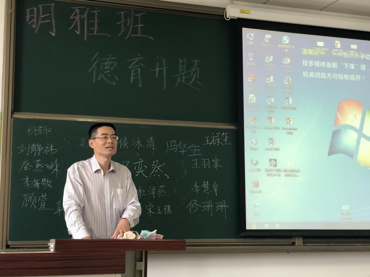 为树立远大理想、明确成长方向、找准成长路径,2019年5月13日15:30,明雅班召开以“已识乾坤大,犹怜草木青” 为主题的德育开题。在场的嘉宾有德育导师李京廉、张帅,班主任韩超,明德书院团委书记王一飞和辅导员王海夷。明雅班全体同学参与其中。