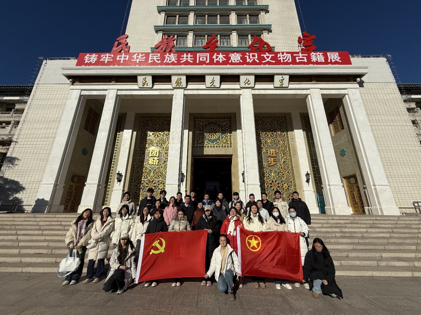 师生们首先在讲解员的引领下,参观了“铸牢中华民族共同体意识文物古籍展”。该展览由“大一统”“大交融”“大团结”三个单元组成,讲述了各民族交往交流交融的故事,展现了中华文明延续不断的历史基因、中华民族凝聚不散的历史密码和中华民族大团结的深邃思想与丰富实践。展馆内1500余件展品琳琅满目,从政治、经济、社会、文化等多个维度展示中华文明孕育、产生和发展的过程,生动再现五千多年来各民族交往交流交融的史实,每一件文物古籍都体现了中华文化的博大精深,也都承载着中华民族共同体的历史记忆。