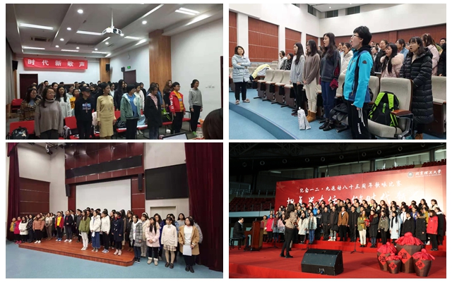 明德书院副院长李冰和团委书记王一飞通过他们激情澎湃的朗诵,展现了时代新人不忘初心,建功立业的信念和信心,由此拉开了合唱序幕。书院全体合唱成员歌声嘹亮,一次次将观众们带到了那个战火纷飞的年代,在回忆和感动中分享着明德师生对革命先驱的崇高敬意和对祖国母亲的深深眷恋。