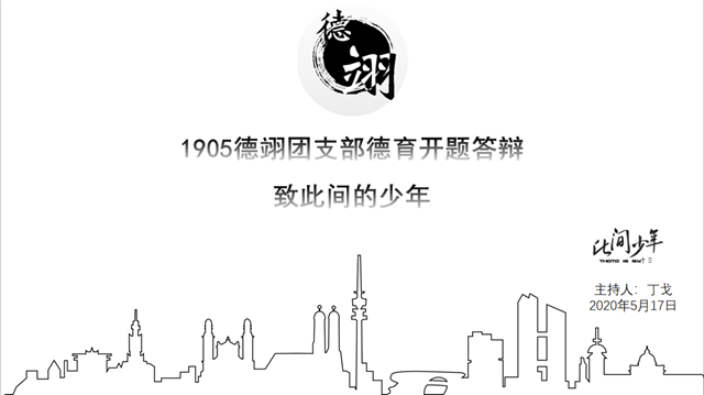 2020年5月17日18时,德翊班以“致此间的少年”为主题的线上德育开题正式开始。我校资产经营有限公司副经理、德翊班德育导师徐贵宝,人文与社会科学学院副院长、德翊班德育导师许欣老师,外国语学院日语系讲师、德翊班学育导师组长谭峥老师,明德书院副院长王一飞老师、辅导员刘敏老师、马睿老师以及德翊班全体同学共同参加了本次德育开题答辩。