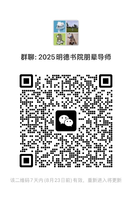 请各位拟聘朋辈导师扫描下方二维码,进入“2025明德书院朋辈导师”微信群,便于接收后续通知。